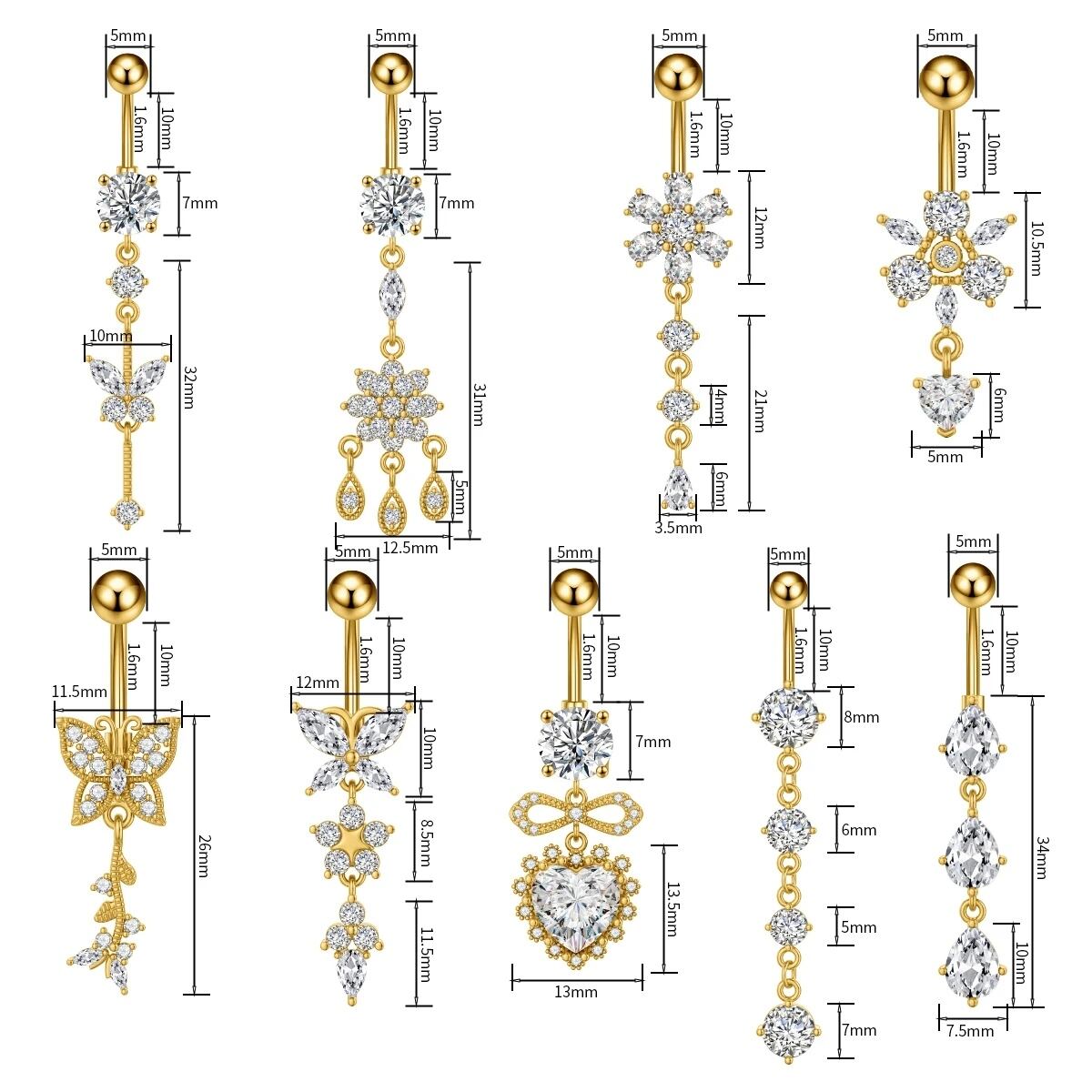 煌めく大粒のキュービックジルコニアを贅沢に使用した、主役級のナベルピアス(へそピアス)。