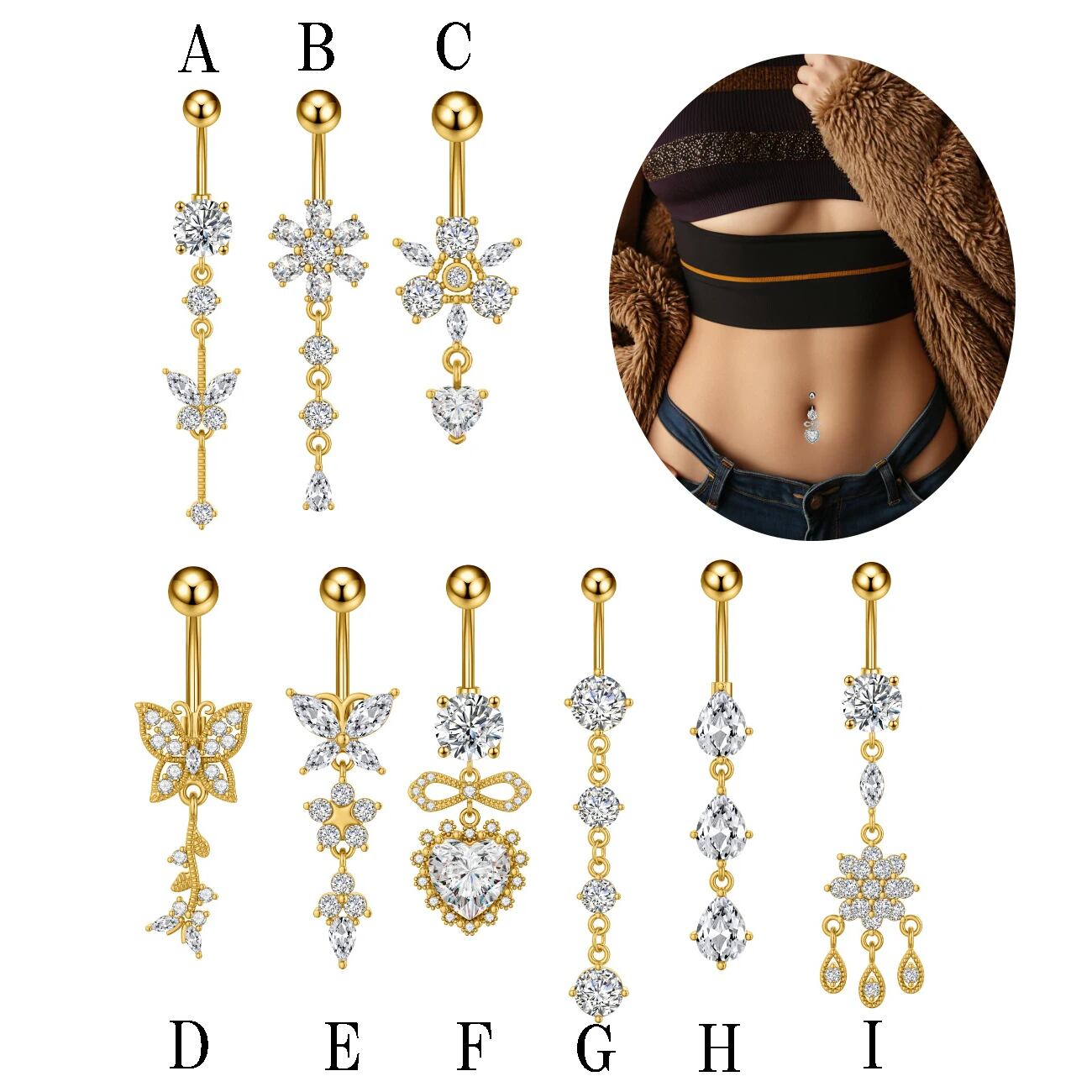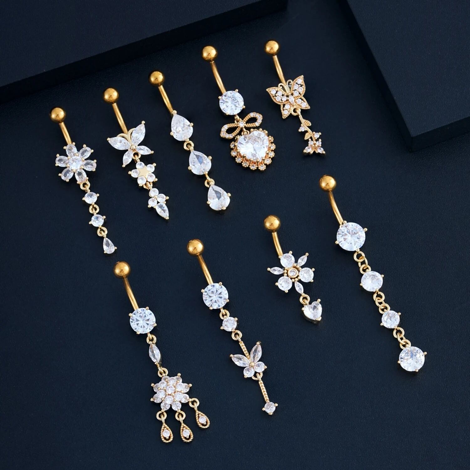 〈2Color〉【全9種】揺れる ビジュー ボディピアス M3 -0446