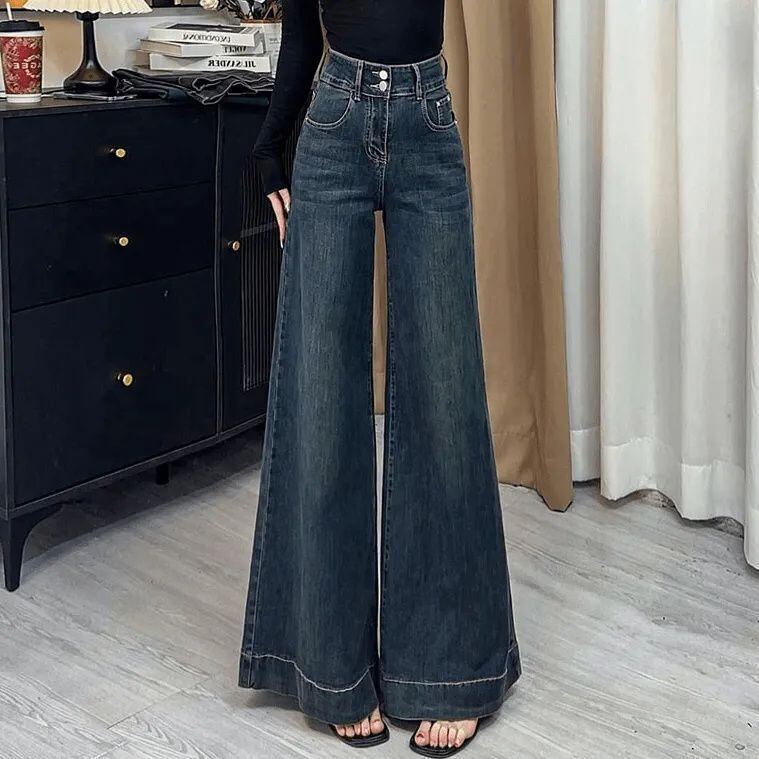 ダブルボタン ハイウエスト ワイドデニム M3 -0549