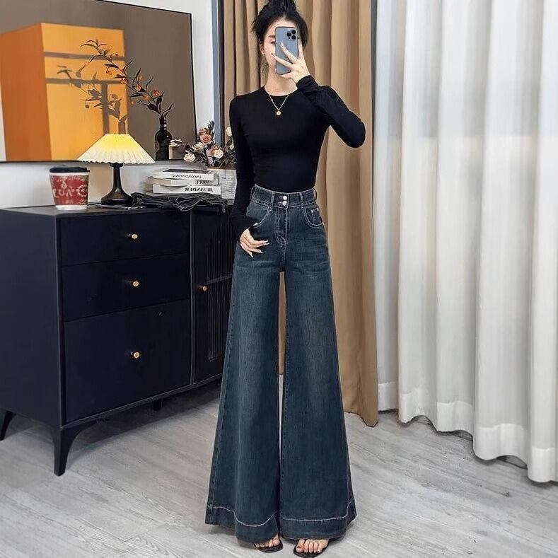 深めの股上とダブルボタンのデザインが、ウエスト周りをキュッと引き締め、驚くほどの脚長シルエットを叶えるワイドデニムが登場。