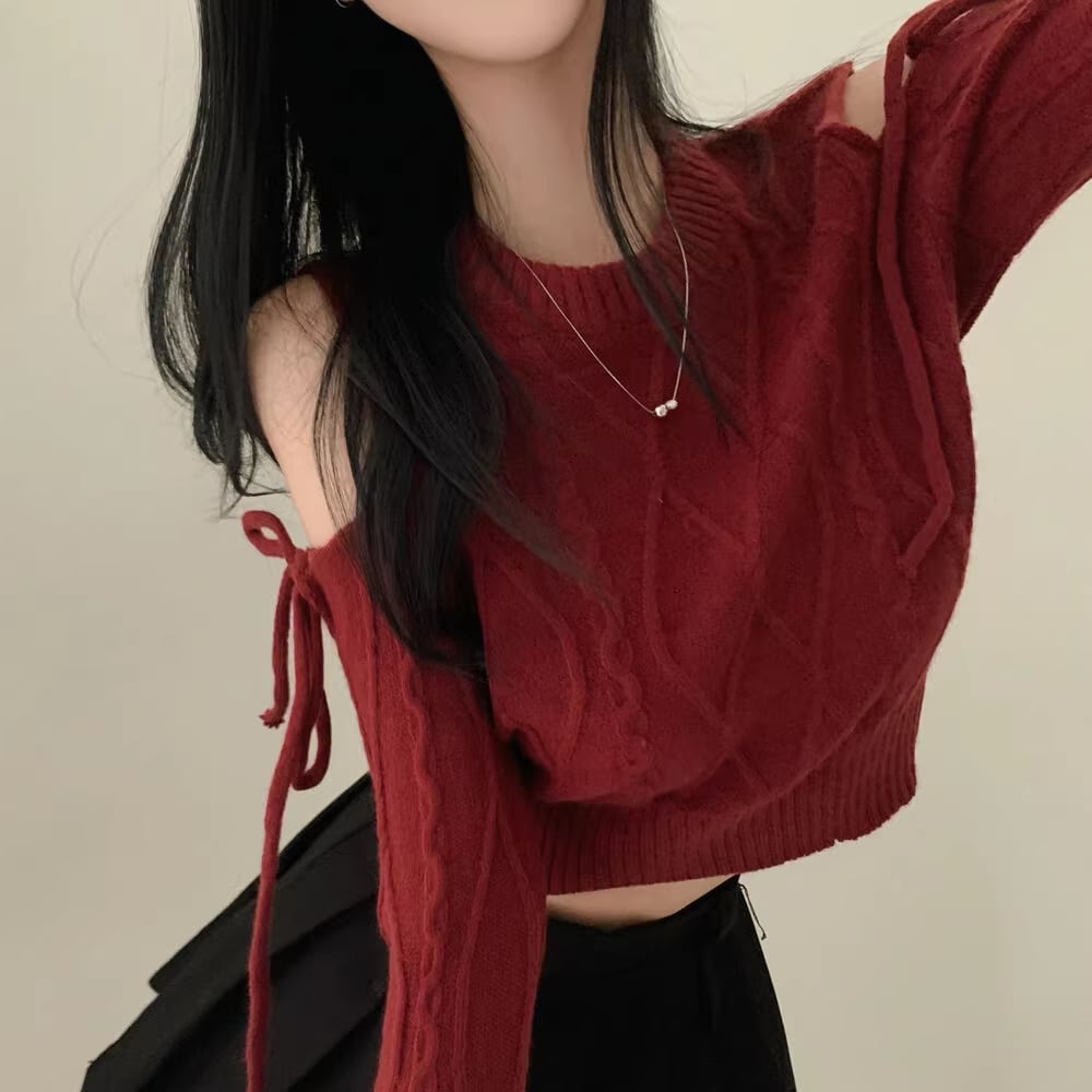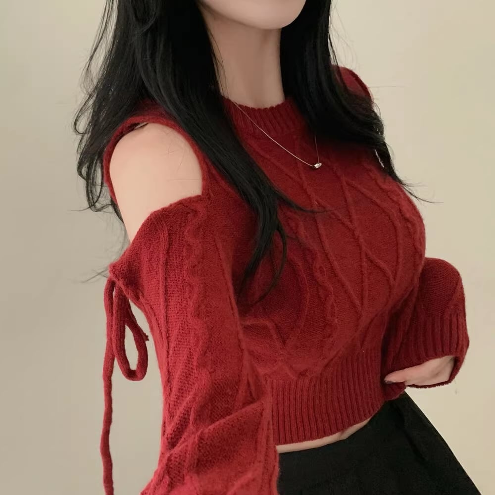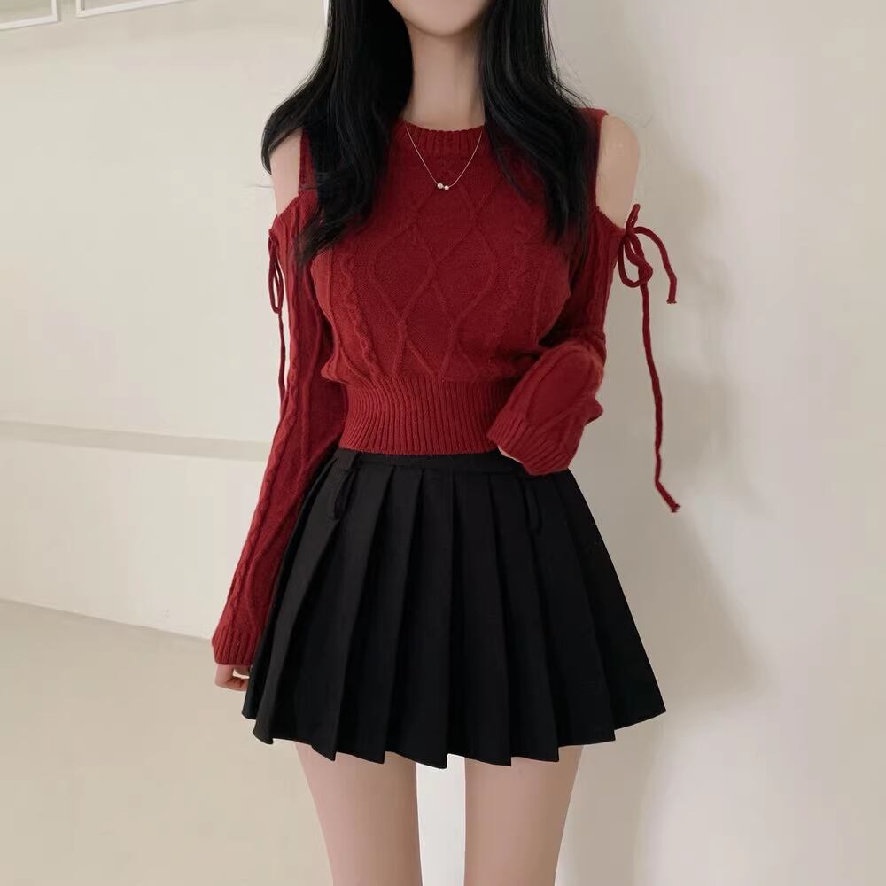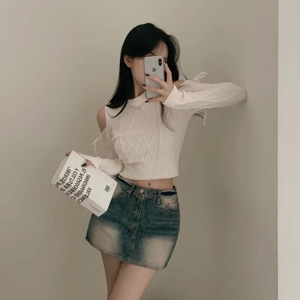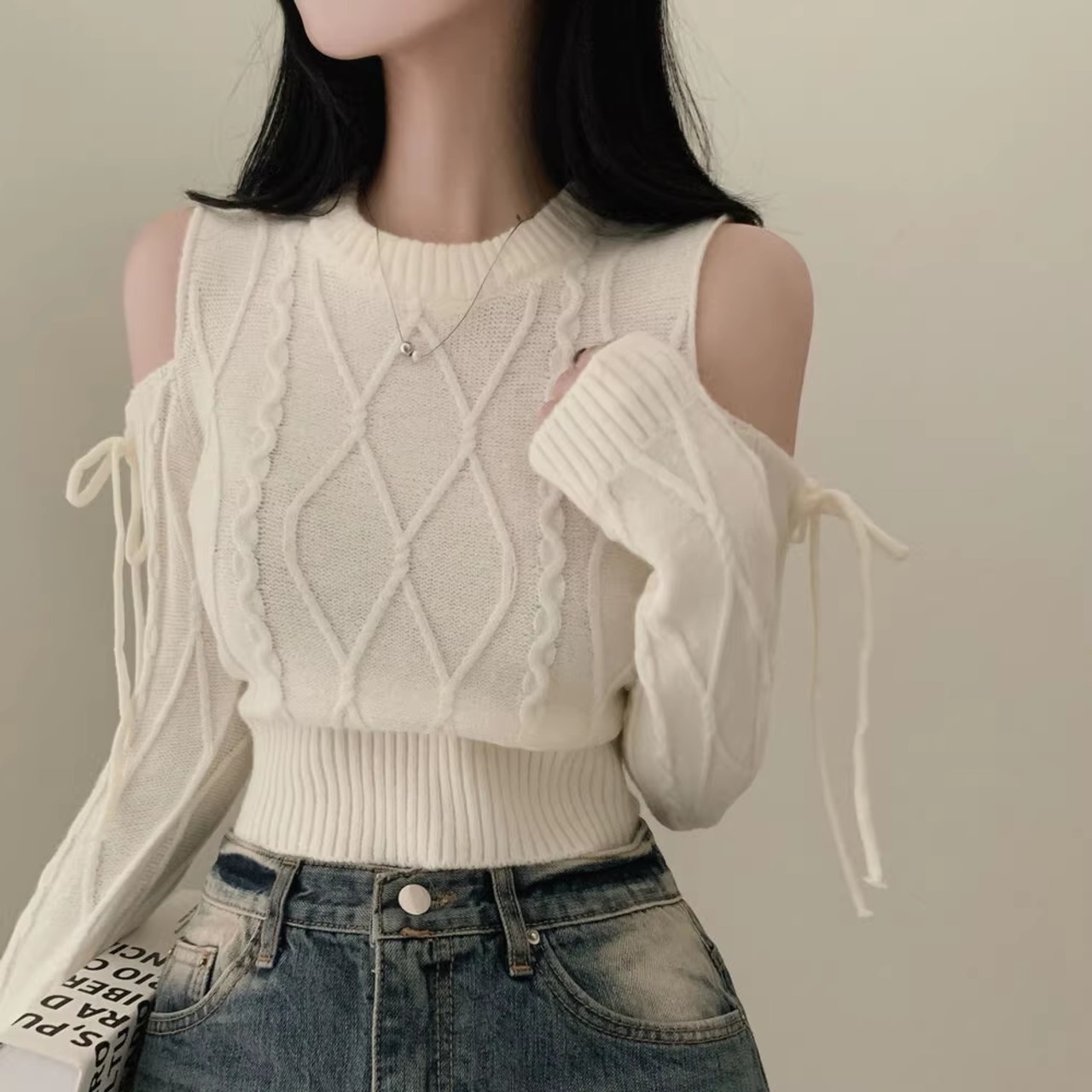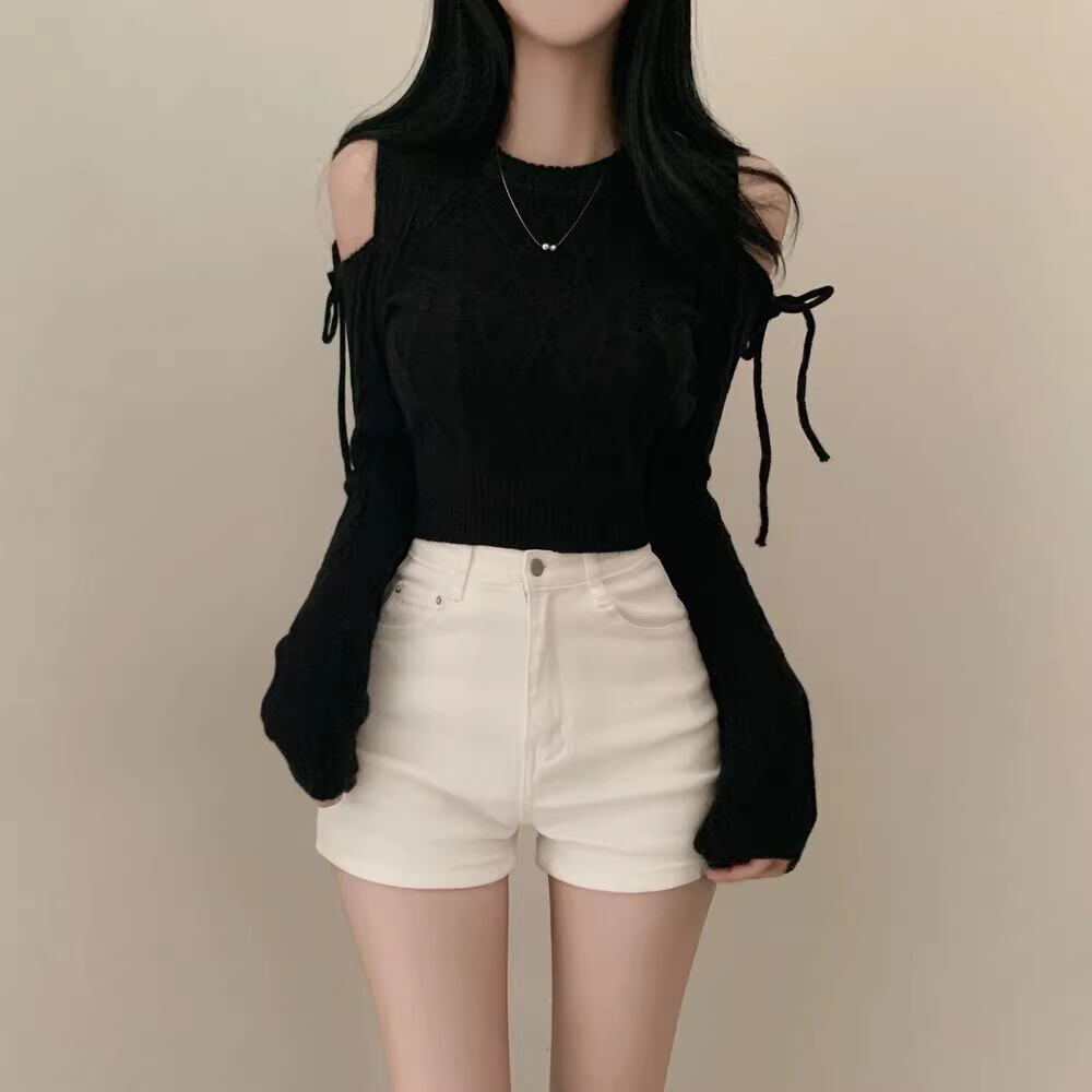 【視線を釘付けにする。計算された「アシメオフショル」のタイトニット】