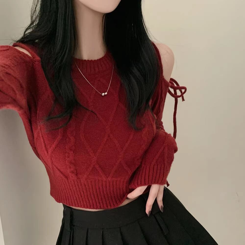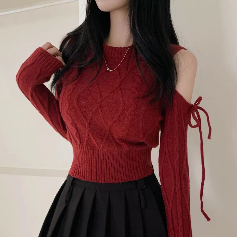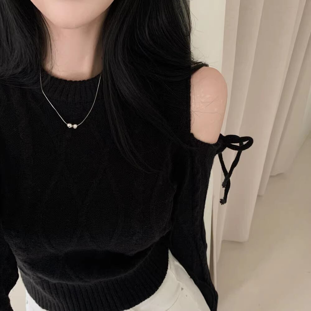 デコルテを美しく大胆に見せるアシンメトリーなオフショルデザインが、洗練された色気を引き出すニットトップス。