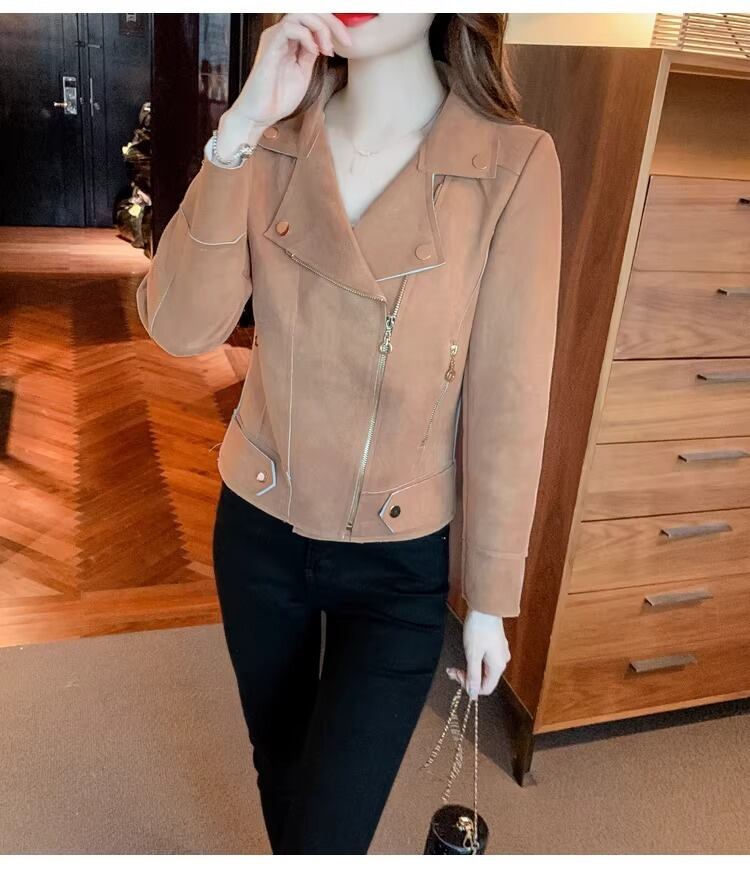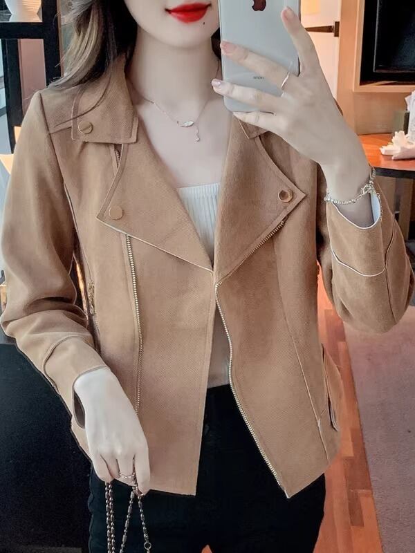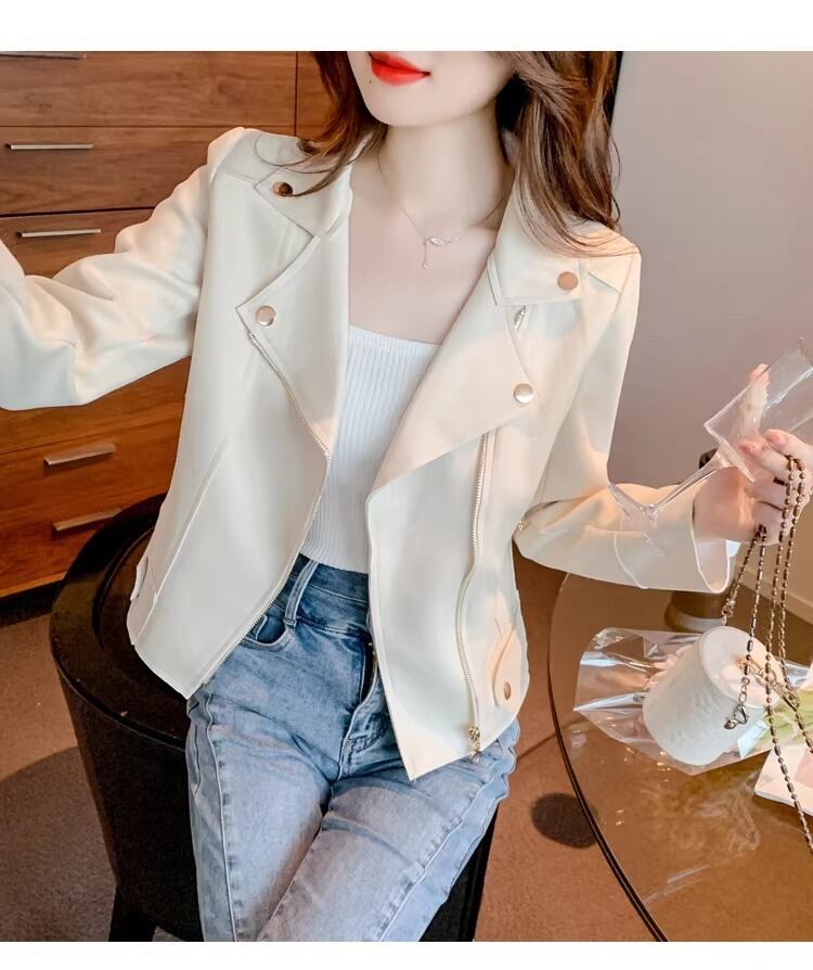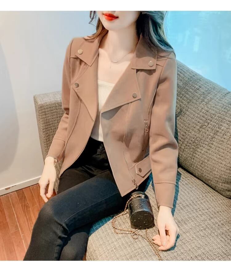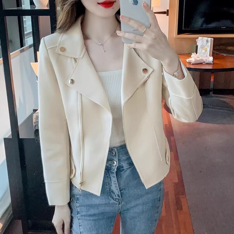 ライダースジャケット特有の無骨さを削ぎ落とし、女性らしい洗練されたシルエットで仕上げた、大人のためのフェイクレザージャケット。