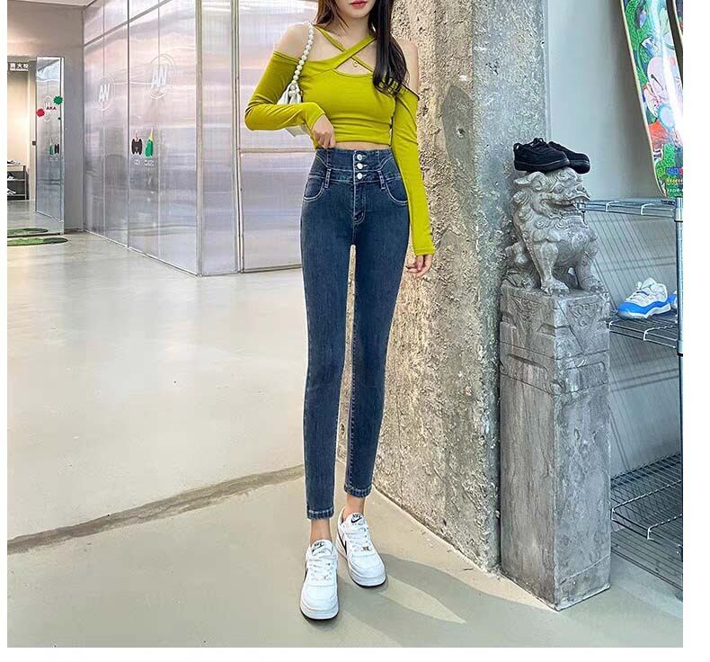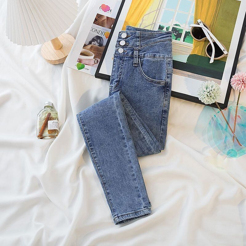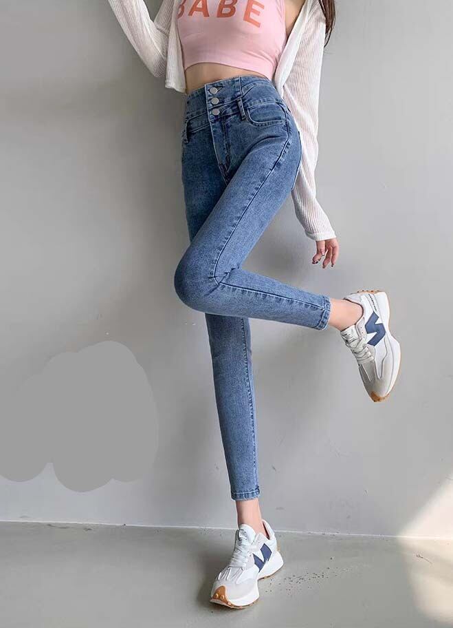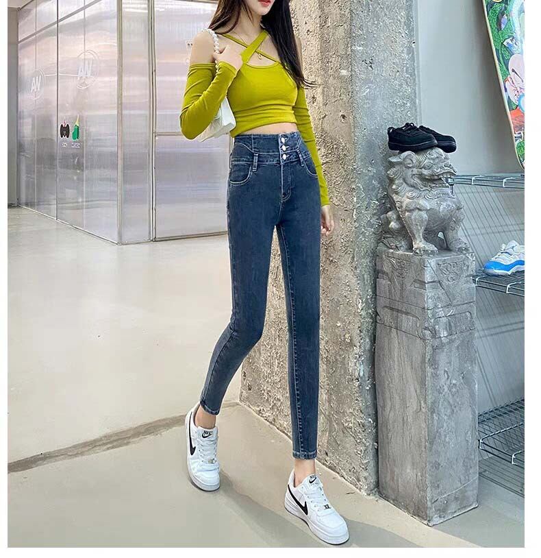 〈4Color〉ハイウエスト Vライン 3連ボタン スキニーデニム M3 -0597