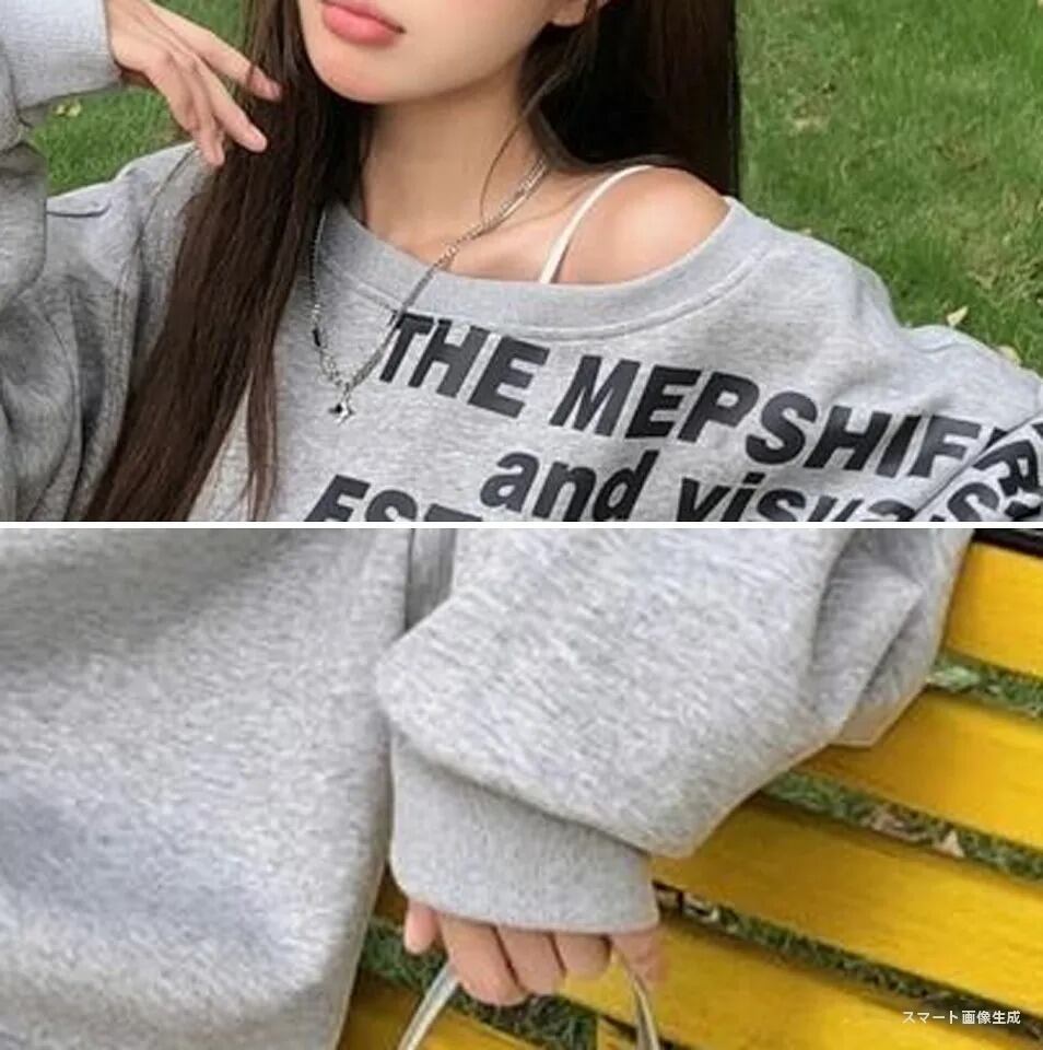 〈2Color〉ロゴプリント・ルーズシルエット・オフショル風スウェット M3 -0602