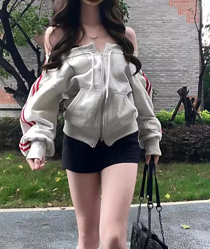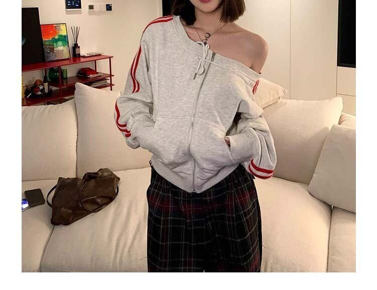 サイドライン入り・オフショルダー・ジップトップス M3 -0603