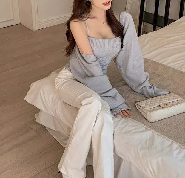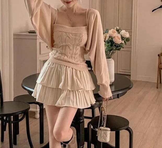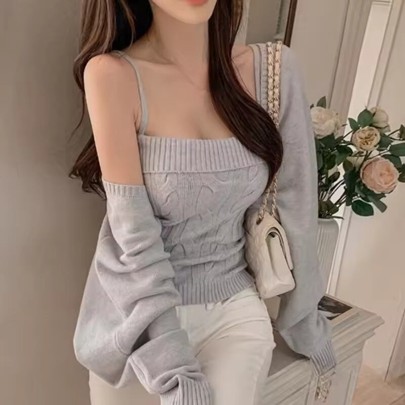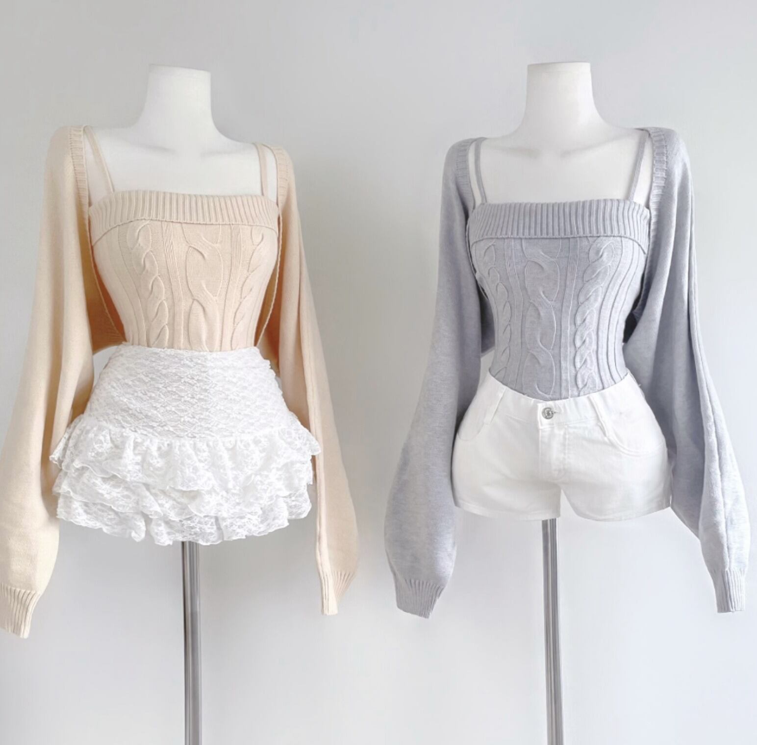 〈2Color〉【セットアップ】短丈カーデ×キャミセット M3 -0606