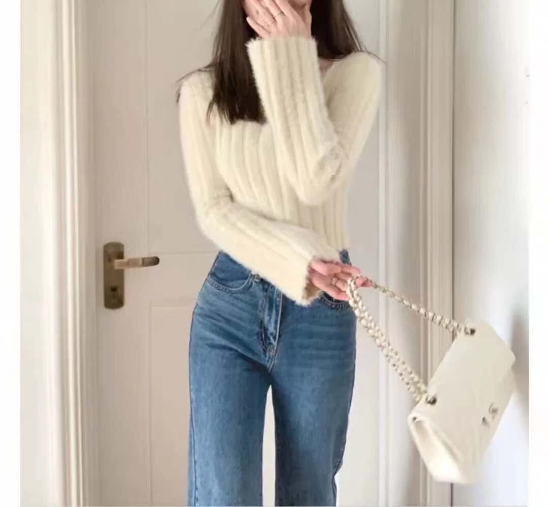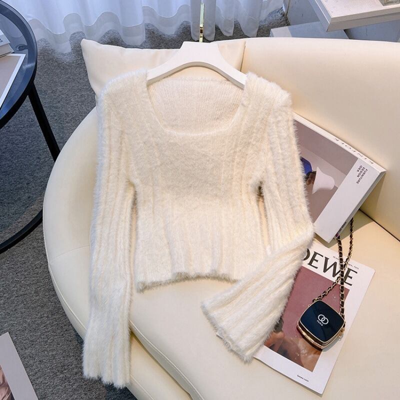 〈4Color〉シャギーニット クロップドトップス スクエアネック M3 -0619
