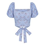 華やかなフローラルプリントと大胆なバックカットアウトディテールが、コーディネートに特別なアクセントを加えます。