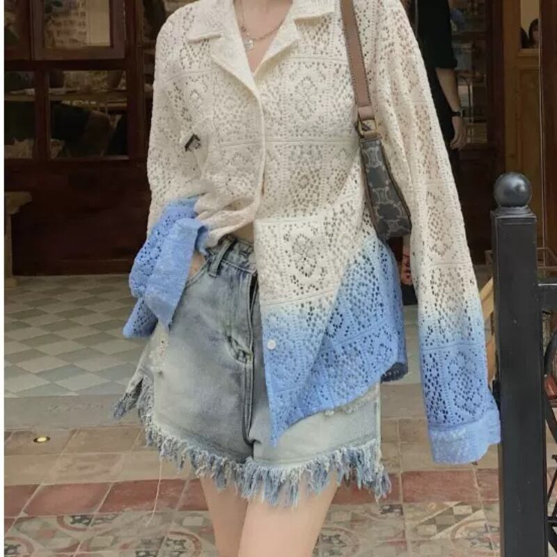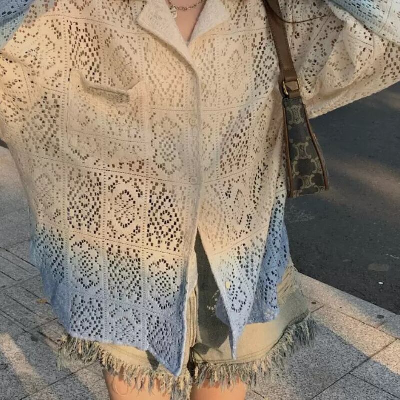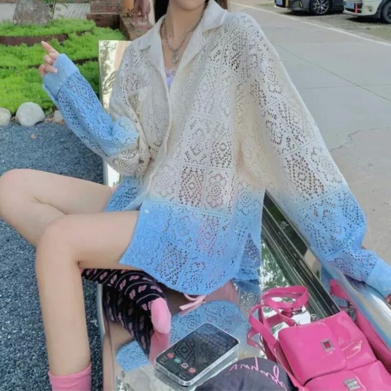スカラップレースが施されたグラデーションカラーのシャツ。