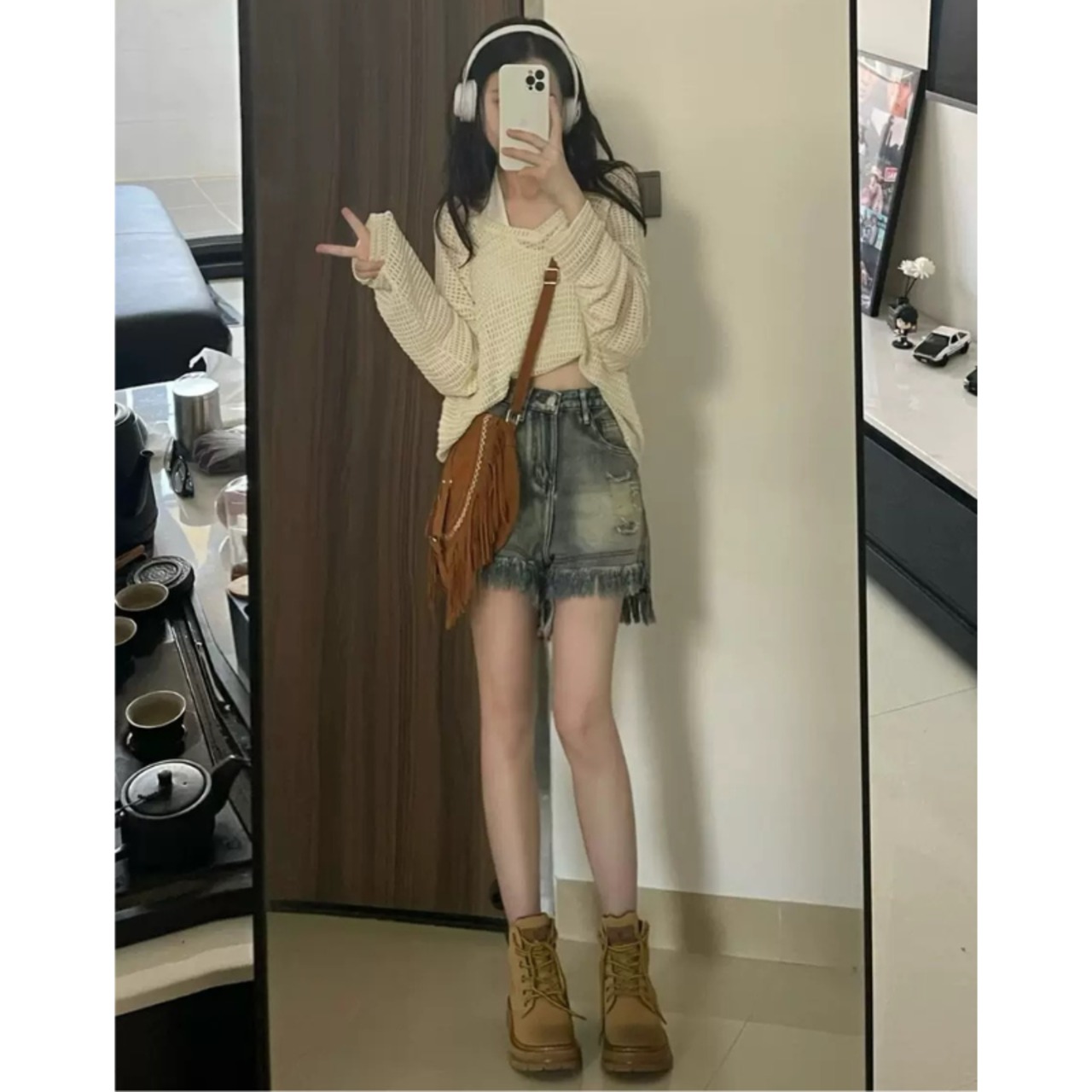 ホワイトニット+ホワイトキャミソール