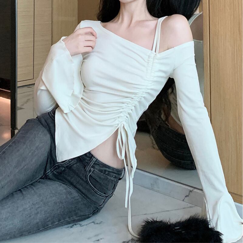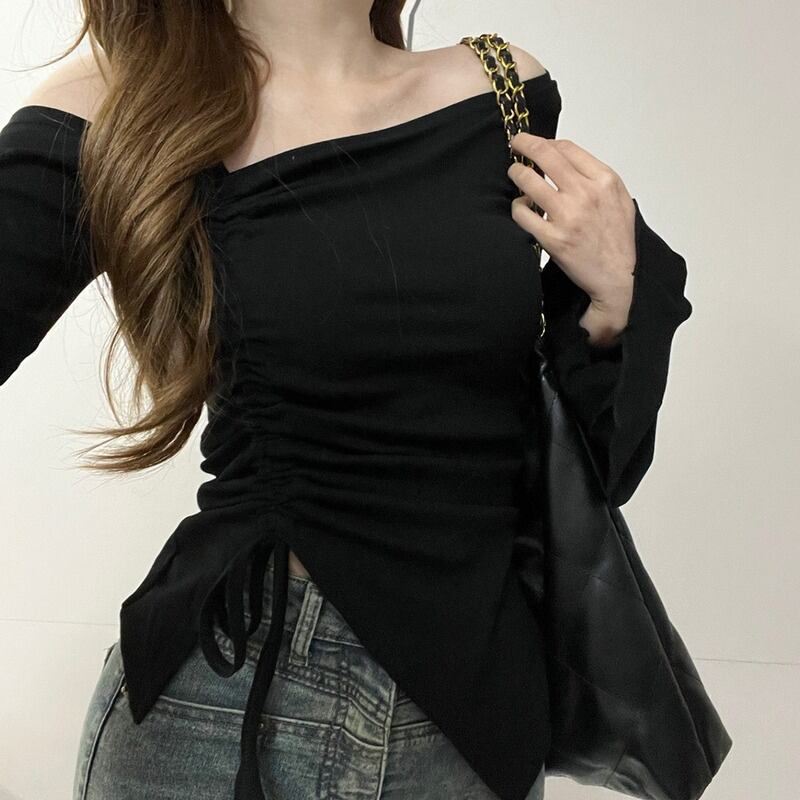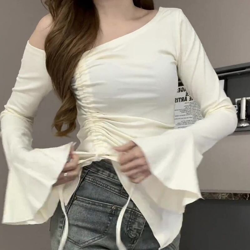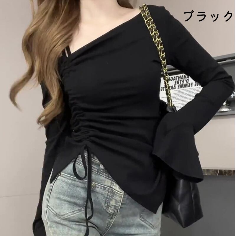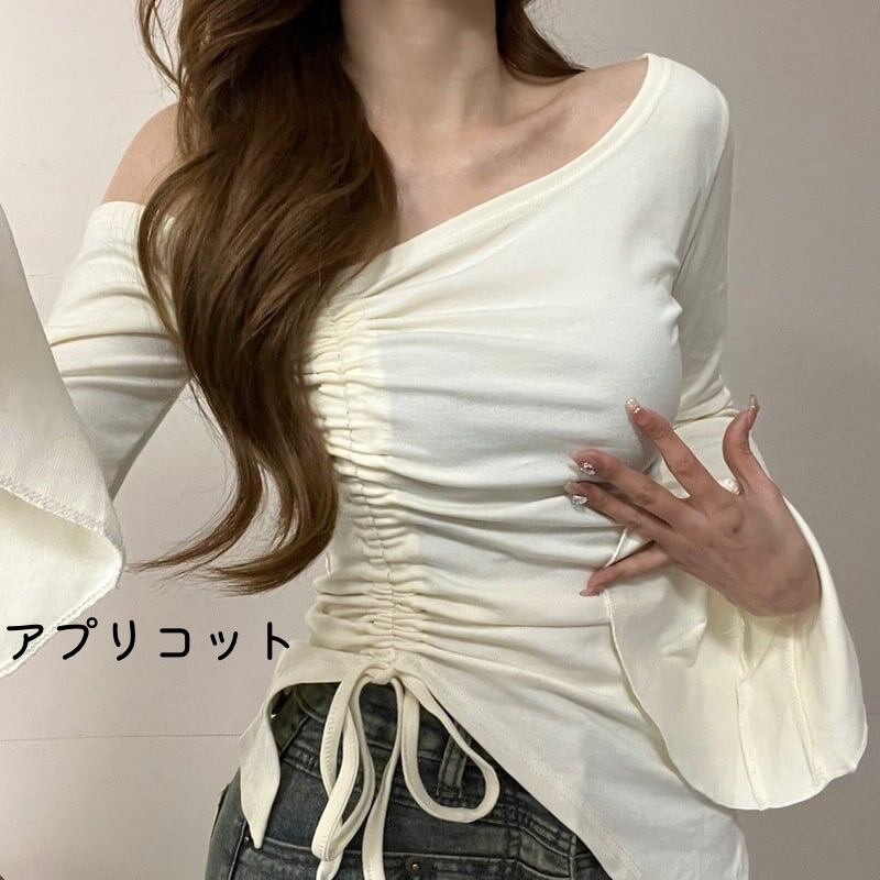 〈3Color〉ワンショルダーシャーリングスフレアカフカットソー M1-0108