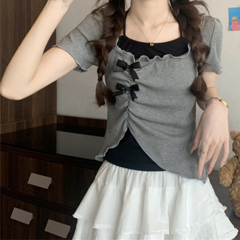 新しい季節にピッタリなラウンドカットヘムが特徴のおしゃれなレイヤードTシャツです。