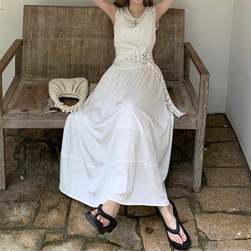 〈2Color〉ハイウエストノースリーブドレープワンピース M1-0153