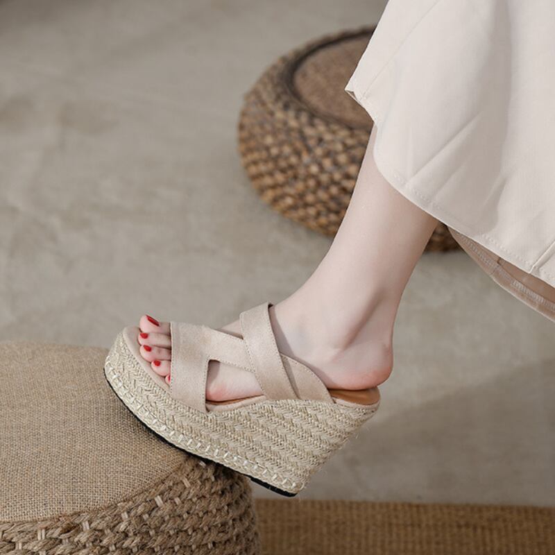 クロスデザインのアッパーと安定感のあるウエッジソールが特徴でデイリーユースにも最適です。