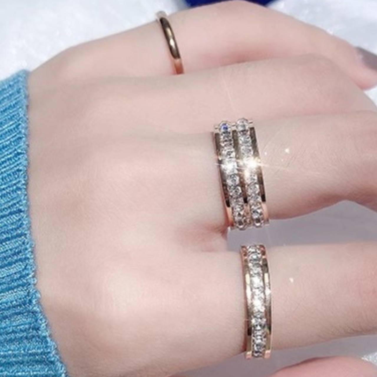 2デザインからお好みで選べるクリスタルの輝きがきれいなリングです。