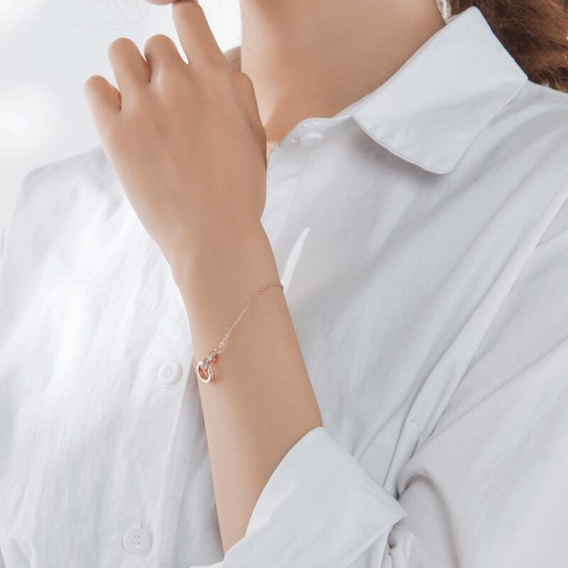 クリスタルがきれいなリングで構成されたシンプルなブレスレットです。