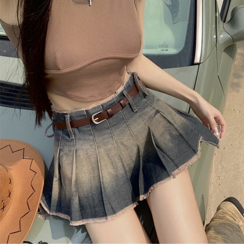 バックロングプリーツデニムスカート M1-0308
