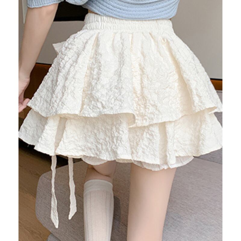 〈2Color〉ロングリボンステッチティアードミニスカート M1-0310