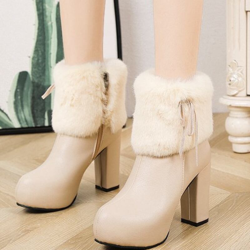 ふわふわのファーが足首周りに施され寒い季節でも暖かさをキープしながらエレガントでリッチな雰囲気を演出します。