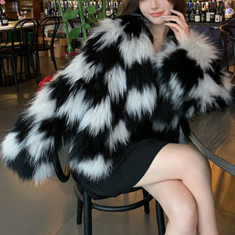 ニュアンスチェックファーコート M1-0433