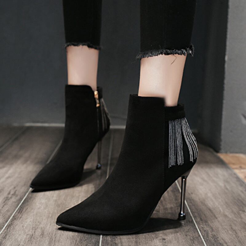 大胆でエレガントなデザインが足元を彩る「ボールチェーンデコレーションショートブーツ」。